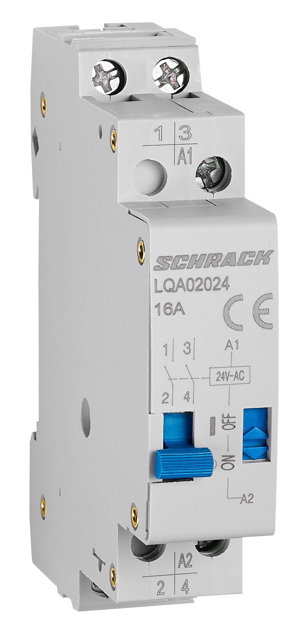 LQA02024– Reiheneinbau Fernschalter, Serie Amparo, 2 Schließer, 24VAC