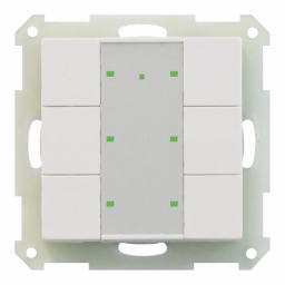 Funktionen Deckenwächter, Präsenzmelder pro Ausgang: Schalten, Treppenhausfunktion, Schalten mit Zwangsstellung, Dimmwertgeber, Lichtszenennebenstelle, Temperaturwertgeber, Helligkeitswertgeber, Temperaturbetriebsmodus.