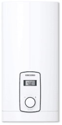 ANWENDUNG: Platzsparender Kompakt-Durchlauferhitzer DCE zur Einzel- und Gruppenversorgung. Einbautiefe nur 10 cm. AUSTATTUNG: Elektronisch geregelt mit 3i Technologie. Gradgenaue Wunschtemperatur bis zur maximalen Leistung. Blankdrahtheizsystem. Serienmäßig mit Netzanschlusskabel. Wassererwärmung von 20-60 C, gradgenau einstellbar über die Bedienung. Temperaturdrehwähler am Gerät bei DCE 11/13 compact. Funkfernbedienung mit 2 Memorytasten und Wandhalterung bei DCE 11/13 compact RC. EFFIZIENZ: Spart bis zu 30 % Energie und Wasser durch elektronische Leistungsregelung. Geeignet für vorerwärmtes Wasser bis 70 C, vorerwärmtes Wasser bis 55 C kann durch den Durchlauferhitzer nacherwärmt werden. PROFI-RAPID INSTALLATION: Einfache und stabile Wandmontage: Direkte Verschraubung durch die Geräterückwand. Vorhandene Befestigungspunkte von gängigen Kleinspeichern weiter nutzbar. Gerätekappe durch Rastverhakung leicht zu öffnen. Außenliegender Wasseranschluss: 3/8? für Installation mit druckloser oder druckfester Armatur. Kunststoffrohrtauglich. Einfacher Elektroanschluss: Netzanschlussleitung serienmäßig vorbereitet für Festanschluss, Variabler Elektroanschluss (oben/unten). Wählbare Leistung von 11 oder 13,5 KW. IP24. Fehleranalyse über LED-Diagnoseanzeige. Innere Baugruppe werkzeugfrei entnehmbar. SICHERHEIT: Blankdrahtheizsystem für kalkarmes und kalkhaltiges Wasser. Intern aktivierbarer Verbrühschutz (max. 43C). Mehrstufiges elektronisches Sicherheitssystem aus Sicherheitstemperaturabschaltung, sensorgesteuerter Überwachung der Heizkörpertemperatur, Lufterkennungssystem.