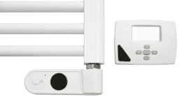 zur Raumtemperaturregelung der Designheizkörper. Übersichtliche LCD-Anzeige mit gleichzeitiger Anzeige von Raumtemperatur, Solltemperatur, Betriebsart und BOOST-Symbol. Ausführung: Als Set inklusive Elektroheizelement der jeweiligen gewünschten Leistung Charakteristiken: 7 Tagesprogramm Kabellose Verbindung durch Infrarotsignal möglich 9 fixe Programme und 4 Userprogramme Batteriebetrieben Raumtemperatur- und Zeitdisplay Komfort/Reduziert/Frorstschutztemperaturen Automatische oder händische Bedienung Urlaubsfunktion BOOSTER Funktion Grafisches Programmdisplay Kindersicherung Batteriewechselanzeige Batterietausch innerhalb einer Minute ohne das programmierte Programm zu löschen Leistungsaufnahme: 500, 750 oder 1000 Watt, AC 230 Volt, Schutzart IP30 Ausführung mit Schukostecker, Kabellänge 150 cm