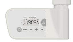 mit eingebautem Heizstab und Elektronikeineinheit (rechts), zur Raumtemperaturregelung der Designheizkörper, übersichtliches Display mit Tasten-Bedienung und Boosterfunktion