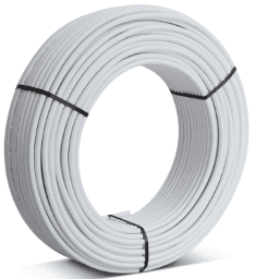 Diffusionsdichtes Metallverbundrohr, PE/AL/PE, sauerstoffdiffusionsdicht. Max. Betriebsdruck: 90°C, Max. Betriebsdruck: 6 bar Innenrohr aus Polyethylen (PE-RT), Haftvermittler, Aluminiumschicht, Haftvermittler, Außenrohr aus Polyethylen (PE-RT)