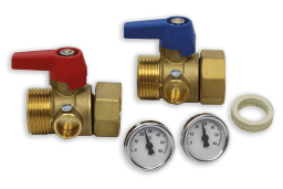 Kugelhahnset bestehend aus einem rot und einem blau gekennzeichneten Kugelhahn.Zum Anschluss an die 1″ Heizkreisverteiler.Überwurfmuttern mit passenden Flachdichtungen und Thermometer beigelegt.Verpackungseinheit: 1 Stück