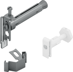 2er Set Bohrkonsolen inklusive Isolator mit weißem Abstandhalter und Aushebesicherung für horizontale/vertikale Plattenheizkörper mit Laschen, Verstellbarkeit Wandabstand von 34 bis 66 mm