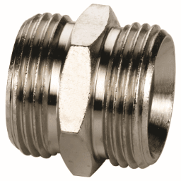 Aus Messing vernickelt, beidseitig 3/4 Eurokonus für Anschluss mit Klemmverschraubungen.