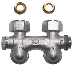 Anschlussstutzen-Mittelabstand 50 mm, Heizkörperanschluss G 3/4 mit frei drehender Mutter, Rohranschluss mit Außengewinde G 3/4 mit Konus, für Klemmsetanschluss, 2 Konushülsen sind beigepackt