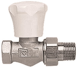 Heizkörperanschluss konischdichtend, Voreinstellung durch ausfahrbaren Drosselkegel. Universalmodelle mit Gewindemuffe für Gewinderohr und Klemmsetanschluss
