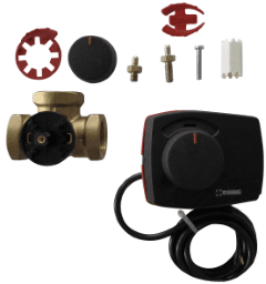 bestehend aus 3-Wege Mischer in DZR Messing mit Innengewinde samt Stellmotor 230 V / 50 Hz, 6 Nm, Laufzeit 120 sec., Stellwinkel 90°