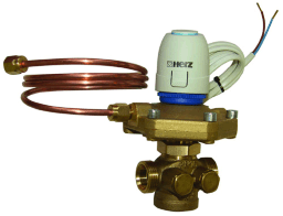 fest eingestellt, kompakte Bauform, Außengewinde DN 15 mit Konus, integr. Stellglied für 2 Punkt Antriebe M28x1,5; 4 mm Hub Antriebe