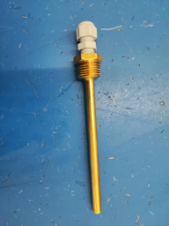 Material Messing, präzise gefertigt, um einen guten Wärmeübergang zum Sensor zu gewährleisten. Innendurchmesser 6 mm, 1/2 Außengewinde SW22, Innengewinde PG7 für die mitgelieferte Zugentlastung; Messing 140mm Kunststoffverschraubung