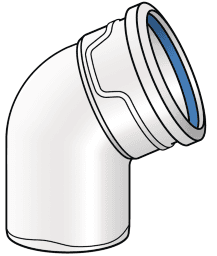 PP – Mineralverstärktes hochschalldämmendes Formstück, mit angeformter Steckmuffe, patentierten Lippendichtring mit integriertem Gleitmittel und Hexagon-Anfasung zur Reduzierung der Einsteckkräfte