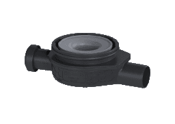 Der Grundkörper für Bodenabläufe Der Ultraflache 79 besteht aus Kunststoff und ist mit einem beiliegenden Geruchsverschluss zur Montage in einem Aufsatzstück ausgestattet.