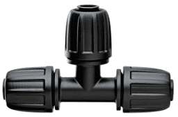 Für die Verbindung von drei Verteilerrohren 1/2 (13 – 16 mm) einer Tropfbewässerungsanlage. Korpus: PP