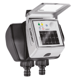 Der solarbetriebene Bewässerungscomputer MyAquaSolar zeichnet sich durch modernste Photovoltaik-Technologie aus und funktioniert ohne Batterien sowie ohne direkte Sonneneinstrahlung selbst bei diffusem Licht. Er ist in den Varianten Tempo (ein Bewässerungskreis) oder Dual (zwei Bewässerungskreise) erhältlich und wird bequem über die intuitive myAquaSolar-App via Bluetooth® programmiert. Pro Bewässerungskreis sind zwei individuelle Programme möglich, ergänzt durch eine flexible Wochenplanung mit der Option, Wochentage auszuschließen. Ein separater Schalter ermöglicht die Deaktivierung oder den manuellen Betrieb, auch über die App. Das stoßfeste, witterungsbeständige Gehäuse schützt isolierte Elektronik, während das abnehmbare Solarmodul, ein waschbarer Filter und ein 3/4″-Hahnstück zusätzliche Flexibilität bieten. Der Betriebsdruck ist zwischen 0,5 und 10 bar einstellbar, und ein optionaler kabelgebundener Regensensor kann angeschlossen werden.