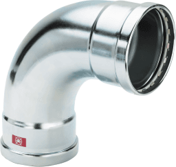 Prestabo XL-Bogen 90°mit SC-Contur- Stahl unlegiert, verzinkt- PressanschlüsseAusstattung Dichtelemente EPDM, Schneidringe, TrennringeModell 1116XLArtikelnummer 597 597VdS-Zulassungd (Rohraußendurchmesser): 108,0