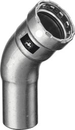 Megapress S-Bogen 45°mit SC-Contur- Für Stahlrohre nach DIN EN 10220/10255- Stahl unlegiert, Zink-Nickel-Beschichtung- Einsteckende, PressanschlussAusstattung Dichtelement FKM, Schneidring, TrennringModell 4326.1Artikelnummer 770 068VdS-ZulassungFernwärme gemäß AGFW FW 524DN (Durchmesser Nominal): 32D (Rohraußendurchmesser nach DIN EN 10255): 1¼