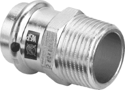 Prestabo-Übergangsstückmit SC-Contur- Stahl unlegiert, verzinkt- Pressanschluss, R-GewindeAusstattung Dichtelement EPDM, MehrkantModell 1111Artikelnummer 559 045VdS-Zulassungd (Rohraußendurchmesser): 28R (Außengewinde kegelig): 1