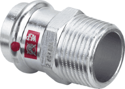 Prestabo-Übergangsstückmit SC-Contur- Stahl unlegiert, verzinkt- Pressanschluss, R-GewindeAusstattung Dichtelement EPDM, MehrkantModell 1111Artikelnummer 641 979d (Rohraußendurchmesser): 15R (Außengewinde kegelig): ¾