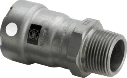 Megapress S-Übergangsstückmit SC-Contur- Für Stahlrohre nach DIN EN 10220/10255- Stahl unlegiert, Zink-Nickel-Beschichtung- Pressanschluss, R-GewindeAusstattung Dichtelement FKM, Schneidring, Trennring, MehrkantModell 4311Artikelnummer 769 628VdS-ZulassungFernwärme gemäß AGFW FW 524DN (Durchmesser Nominal): 40D (Rohraußendurchmesser nach DIN EN 10255): 1½R (Außengewinde kegelig): 1½