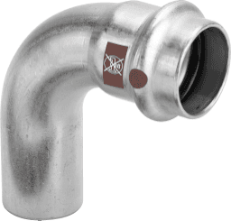 Zeta-Wert optimierter Press-Bogen 90° für Richtungsänderung mit minimalem Radius, aus entzinkungsbeständigen Messing (DZR) porenfrei metallisiert, inkl. Stützhülsen mit O-Ringen und Edelstahl-Presshülse „unverpresst undicht“