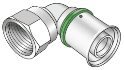 Press-Übergangswinkel mit IG, aus entzinkungsbeständigen Messing (DZR) porenfrei metallisiert, inkl. Stützhülsen mit O-Ringen und Edelstahl-Presshülsen, „unverpresst undicht“ KEINE Gewinderohre und Tempergussfittings eindrehen!