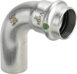 Sanpress Inox-Bogen 90°mit SC-Contur- Stahl nichtrostend- Einsteckende, PressanschlussAusstattung Dichtelement EPDMModell 2316.1Artikelnummer 435 769VdS-Zulassungd (Rohraußendurchmesser): 54