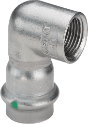 Sanpress Inox-Übergangswinkel 90°mit SC-Contur- Stahl nichtrostend- Pressanschluss, Rp-GewindeAusstattung Dichtelement EPDMModell 2314.2Artikelnummer 437 046VdS-Zulassungd (Rohraußendurchmesser): 28Rp (Innengewinde zylindrisch): 1