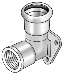 Press-Wandscheibe 90° mit Innengewinde aus Edelstahl 1.4404, inkl. EPDM-Dichtelemente, „unverpresst undicht“ Presskontur: M