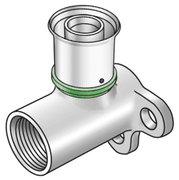 Press-Wandscheibe mit IG, aus entzinkungsbeständigen Messing (DZR) porenfrei metallisiert, inkl. Stützhülsen mit O-Ringen und Edelstahl-Presshülsen, „unverpresst undicht“ Gesamthöhe: 1/2″ – 46mm 3/4″ – 52mm KEINE Gewinderohre und Tempergussfittings eindrehen!