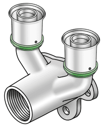 Doppel U-Press-Wandscheibe mit IG, aus entzinkungsbeständigen Messing (DZR) porenfrei metallisiert, inkl. Stützhülsen mit O-Ringen und Edelstahl-Presshülsen, „unverpresst undicht“ Gesamthöhe: 1/2″ – 46mm 3/4″ – 46,5mm KEINE Gewinderohre und Tempergussfittings eindrehen!
