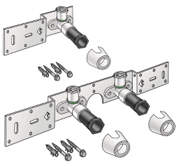 Mit SMX480 Wandscheiben-Winkel 90° schallgedämmt, Stopfen, Metallhalterung, Dübel und Befestigungselemente KEINE Gewinderohre und Tempergussfittings eindrehen!