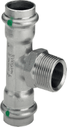Sanpress Inox-T-Stückmit SC-Contur- Stahl nichtrostend- Pressanschlüsse, R-GewindeAusstattung Dichtelemente EPDM, MehrkantModell 2317.1Artikelnummer 446 031VdS-Zulassungd1 (Rohraußendurchmesser): 54R (Außengewinde kegelig): 1d2 (Rohraußendurchmesser): 54