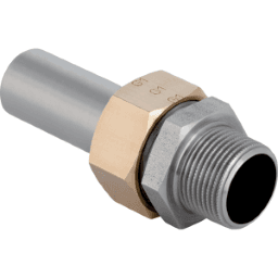 Geberit Mapress Edelstahl Übergangsverschraubung mit AußengewindeVerwendungszweckeFür Haustechnik, Industrie und SchiffbauEigenschaftenDichtring aus CIIR schwarzFlachdichtung aus EPDMÜberwurfmutter aus MessingTechnische EigenschaftenMediumtemperatur mit Flachdichtung EPDM (°C) – min. bis max.: 0100 °CWerkstoff: CrNiMo-Stahl 1.4401 (EN 10088)Form: Geraded, ø / Außendurchmesser (mm): 35 mmR / kegeliges Außengewinde („): 1 1/4 ?G / Rohrgewinde (?): 1 1/2 ?L / Länge (cm): 8,5 cmH / Höhe (cm): 5,9 cm