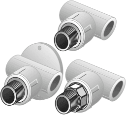 KETRIX Polyfusions-Schweißformstück, Verbindung von POB Rohren und werkstoffgleichen Fittings ohne Querschnittsverengung, mit eingespritztem Innengewinde aus entzinkungsbeständigem Messing und porenfreier Metallisierung, Gewinde gemäß ÖNORM EN 10226 Mit „S“ gekennzeichneten Systemteile werden mit Schlüsselansatz gefertigt KEINE Gewinderohre und Tempergussfittings eindrehen!