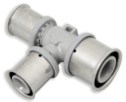 KU-Pressfitting, hergestellt aus dem Hochleistungskunststoff PPSU und MS-Pressfitting aus Messing.T-Stück mit Stützkörper und jeweils drei fixierten Edelstahl-Hülsen für die unlösbaren Verbindungen mit den Roth Systemrohren Alu-Laserplus®.LxBxd: 113 x 74 x 46 mmVerpackungseinheit: 2 Stück