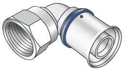 Press-Übergangswinkel mit IG, aus Messing porenfrei metallisiert, inkl. Stützhülsen mit O-Ringen und Stahl bzw. Edelstahl-Presshülsen, „unverpresst undicht“ KEINE Gewinderohre und Tempergussfittings eindrehen!