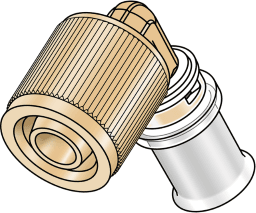 Zeta-Wert optimierter Spülkasten-Anschlusswinkel 90° mit Verschraubung IG, aus entzinkungsbeständigen Messing (DZR), inkl. Stützhülsen mit O-Ringen und Edelstahl-Presshülsen, „unverpresst undicht“, akustisches Leckage-Signal bei Luftdruckprobe
