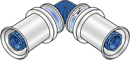 Zeta-Wert optimierter Press-Winkel 90° für Richtungsänderung mit minimalem Radius, aus PPSU, inkl. Stützhülsen mit O-Ringen und Edelstahl-Presshülse „unverpresst undicht“, akustisches Leckage-Signal bei Luftdruckprobe