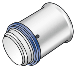 Press-Endkappe, aus Messing porenfrei metallisiert, inkl. Stützhülsen mit O-Ringen und Stahl bzw. Edelstahl-Presshülsen, „unverpresst undicht“