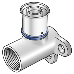 Press-Wandscheibe mit IG, aus Messing porenfrei metallisiert, inkl. Stützhülsen mit O-Ringen und Stahl bzw. Edelstahl-Presshülsen, „unverpresst undicht“ Gesamthöhe: 1/2″ – 46mm 3/4″ – 52mm KEINE Gewinderohre und Tempergussfittings eindrehen!