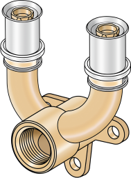 Zeta-Wert optimierte Doppel U-Press-Wandscheibe mit IG, aus entzinkungsbeständigen Messing (DZR), inkl. Stützhülsen mit O-Ringen und Edelstahl-Presshülsen, „unverpresst undicht“, akustisches Leckage-Signal bei Luftdruckprobe KEINE Gewinderohre und Tempergussfittings eindrehen!