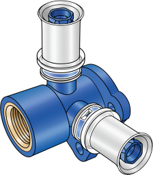 Zeta-Wert optimiertes Press-Armaturenanschluss-T-Stück mit IG, aus PPSU, inkl. Stützhülsen mit O-Ringen und Edelstahl-Presshülsen, „unverpresst undicht“, akustisches Leckage-Signal bei Luftdruckprobe Gesamthöhe: 1/2″ – 50mm KEINE Gewinderohre und Tempergussfittings eindrehen! KEINE Flüssigdichtmittel verwenden!