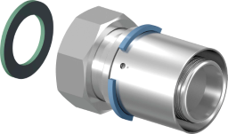 Press-Übergang mit AG zum Eindichten, aus Messing porenfrei metallisiert, inkl. Stützhülsen mit O-Ringen und Stahl bzw. Edelstahl-Presshülsen, „unverpresst undicht“