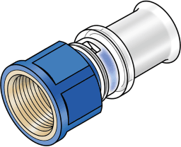 Zeta-Wert optimierter Press-Übergang mit IG, aus PPSU, inkl. Stützhülsen mit O-Ringen und Edelstahl-Presshülsen, „unverpresst undicht“, akustisches Leckage-Signal bei Luftdruckprobe KEINE Gewinderohre und Tempergussfittings eindrehen! KEINE Flüssigdichtmittel verwenden!