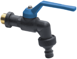 Resistent gegen Frost, Gewinde nach ISO 7, Temperaturbereich: Wasser -20 °C bis + 75 °C. Vorteil: Wenn sich Wasser im Kugelhahn befindet und die Temperatur unter 0 ° C sinkt verwandelt sich das Wasser in Eis, wodurch das Volumen zunimmt. Durch die Erhöhung des Volumens entsteht ein Druck, der den Kugelhahn brechen kann. Dieser Kugelhahn hat durch seinen Werkstoff einen elastischen Körper, welcher in der Lage ist, die Volumenzunahme durch Vereisung zu absorbieren und sobald die Temperatur steigt, dann wieder in seinen ursprünglichen geometrischen und dichtenden Eigenschaften zurückkehrt. Werkstoff: Gehäuse: PP-Copolymerkugelhahn PN16, Griff: blauer Hebel aus glasfaserverstärktem Nylon 66, Dichtung: PTFE, O-Ring: NBR