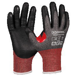 EIGENSCHAFTEN nahtloser dünner Schnittschutzhandschuh mit extra weicher Nitril Mikroschaum Beschichtung schwarze, rutschhemmende Nitril Noppen extrem leichter und weicher Träger aus fortschrittlichen 18 Gauge Synthetik und Edelstahlfasern, sowie rePET Fasern sehr robuste, atmungsaktive und ölabweisende Beschichtung optimale Fingerfertigkeit und ein sicherer Griff auch bei glatten Gegenständen gezielt positionierte Verstärkung im Daumen Zeigefinger Bereich für längere Haltbarkeit präzise & schnelle Bedienung von Touchscreens dermatologisch getestet auf HautverträglichkeitANWENDUNGSBEREICHLuft und Raumfahrt, Automobilbau, Maschinenbau, Metallverarbeitung, Glasverarbeitung, Bauindustrie, Landwirtschaft, SanitärbauPRIMÄRER SCHUTZSchützt vor/gegen: Schmutz Mechanische Risiken gem. EN 388 Leistungsstufen