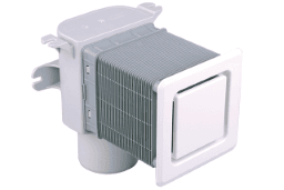 HL905N Rohrbelüfter, geeignet für den Unterputz-Einbau in Wänden. Abgang DN50/DN75 senkrecht, ablängbarer Bauschutz, herausnehmbarer Funktionseinsatz und Abdeckung sind im Lieferumfang enthalten. Durch die flache Bauweise ist der Einbau in Trockenbauwände mit 75mm Ständerprofilen möglich.
