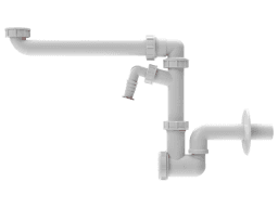 HL137N-WM/40 Waschtisch-Raumsparsiphon DN40 mit großzügig ablängbaren Rohrteilen mit Anschlussgewinde 5/4″ mit Waschgeräte-Anschlussknie 3/4″, herausziehbarem Reinigungseinsatz, drehbarem Abgangsbogen und Rosette.