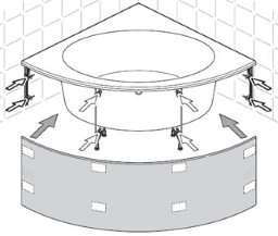 in Kombination mit Acryl-SchürzeSchürzenmontageset aus Stahlschienen zur Befestigung einer Frontschürze an eine Badewanne. Inklusive Wannenfuß,Wandleisten, Haltemagneten und Wand-Befestigungsmaterial.