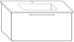 1 Auszug, Keramik-Waschtisch 103 x 49,5 cm, Beckenmaß 68,8 x 29,1 cm, Muldentiefe 12 cm, Raumsparsiphon, Unterschrank 100 x 48 x 49,5 cm